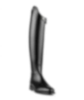 Very elegant riding boot in french box calf leather and with high dressage bow. The riding boot is narrow in the ankle and has along inside zipper, push button at the top. The outer shaft of the ridng boot is extra stiff and the inside is lined with soft calf leather and comfort footbed.