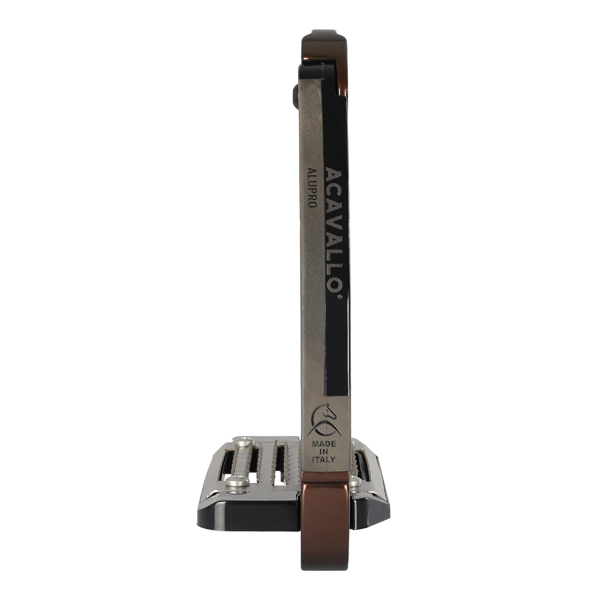 The Acavallo Arena Safety Stirrup is an innovative and highly secure stirrup, designed to provide riders with both safety and comfort. Thanks to its patented side opening at the lower end, the foot is quickly released in case of a fall, reducing the risk of getting caught in the stirrup.