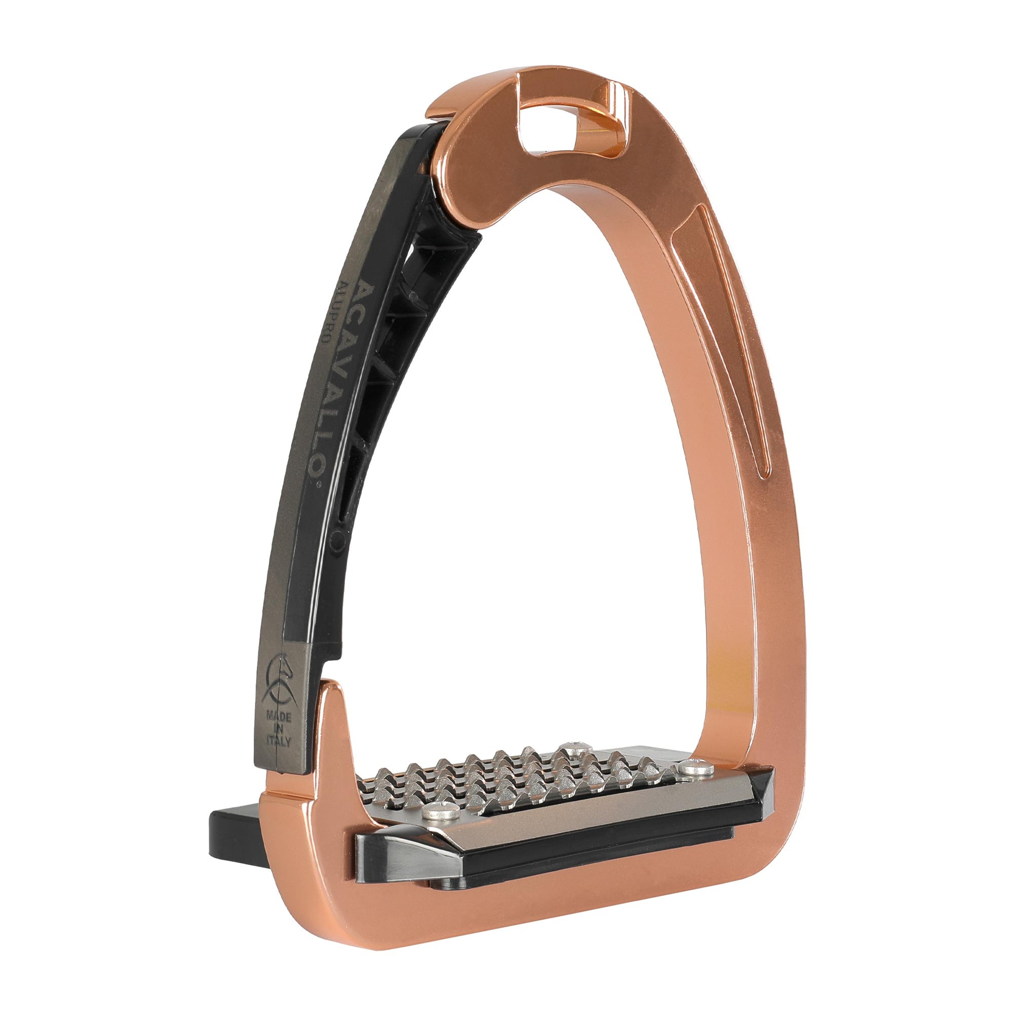 The Acavallo Arena Safety Stirrup is an innovative and highly secure stirrup, designed to provide riders with both safety and comfort. Thanks to its patented side opening at the lower end, the foot is quickly released in case of a fall, reducing the risk of getting caught in the stirrup.