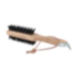 The softer brush is gentle on the hoof’s delicate areas, while the firmer side is ideal for removing dirt and mud. Made with a durable beechwood handle, tough polypropylene (PP) bristles, and a practical leather strap for hanging.