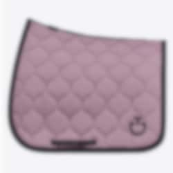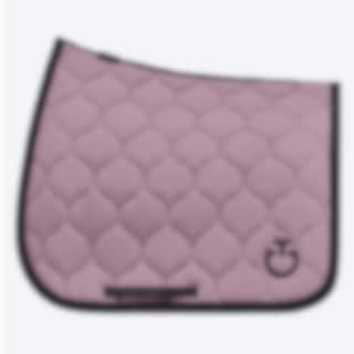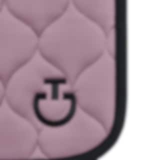 This jumping saddle pad from Cavalleria Toscana is incredibly stylish with beautifully quilted squares. The Circular Quilted Jersey jumping saddle pad comes in a lovely pink colour with a black CT logo, black piping, and a black spine channel featuring the Cavalleria Toscana text and branding there as well.