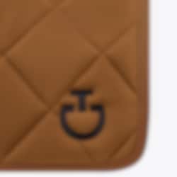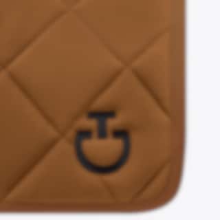 This dressage saddle pad from Cavalleria Toscana is incredibly stylish with large quilted squares. The Diamond Quilted Jersey dressage saddle pad comes in a perfect dark beige colour and features a black CT logo and a black spine channel with the Cavalleria Toscana branding there as well.