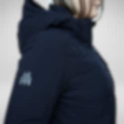 This supernice riding coat is made in a waterproof material (10 000 Water Column), but has no taped seams and is therefore classed as water-repellent and can handle quite a lot of rain or snow. The coat has synthetic filling and keeps you warm. Hogsta's riding coat has a nice, flattering cut, nice Hogsta-quilting, comfortable cuffs, detachable hood, pockets with zipper and closes with a two-way zipper to be extra flexible.
