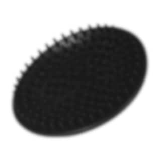 A round massage brush with soft, closely spaced bristles that provide a pleasant massage and stimulate blood circulation in the horse.