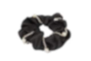 Cute Scrunchie in black satin with silver pearls.