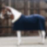 Vit häst med ett marinblått Kentucky Walker Täcke