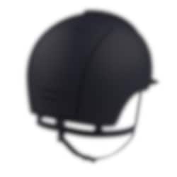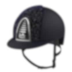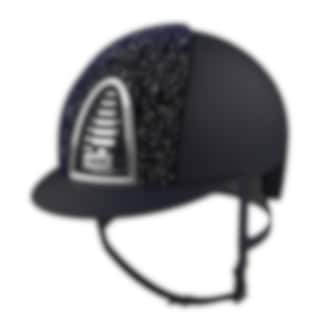 The riding helmet Cromo 2.0 Textile/Sparkling has a navy blue varnished matt shell, rear, visor and grid. Sparkling navy blue velvet on front, chrome frame, sub-grid and button. Navy blue leather chinstrap. Cromo 2.0 has an innovative mechanical system that allows the rider to change the color and design on both the front and rear to adapt the helmet to his own taste and liking.