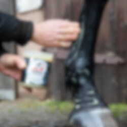 - Apply directly to the horse’s wet legs after hosing down