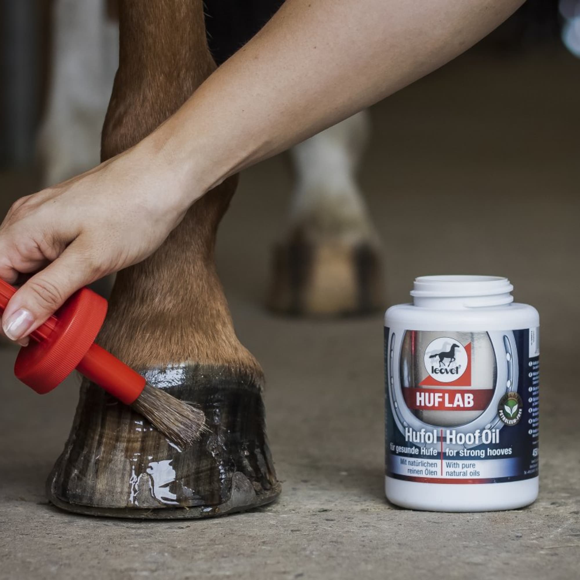 Leovet HufLab Hoof Oil is a natural and nourishing hoof oil for daily hoof care. The oil penetrates quickly into the horn, provides deep hydration, and helps maintain the hoof’s elasticity, strength and overall health. It protects the hoof against dryness, cracks and chipping, while leaving a beautiful, long-lasting shine.