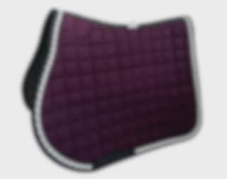 This jumping saddle pad is made of cotton with soft teddy at the withers to prevent chafing. The plum colour makes this saddle pad stand out in the crowd, it also has a edging in black and two passpoals. one in silver and one in black, silver and white.