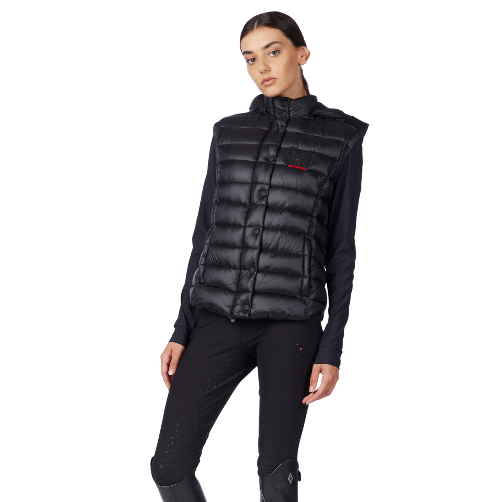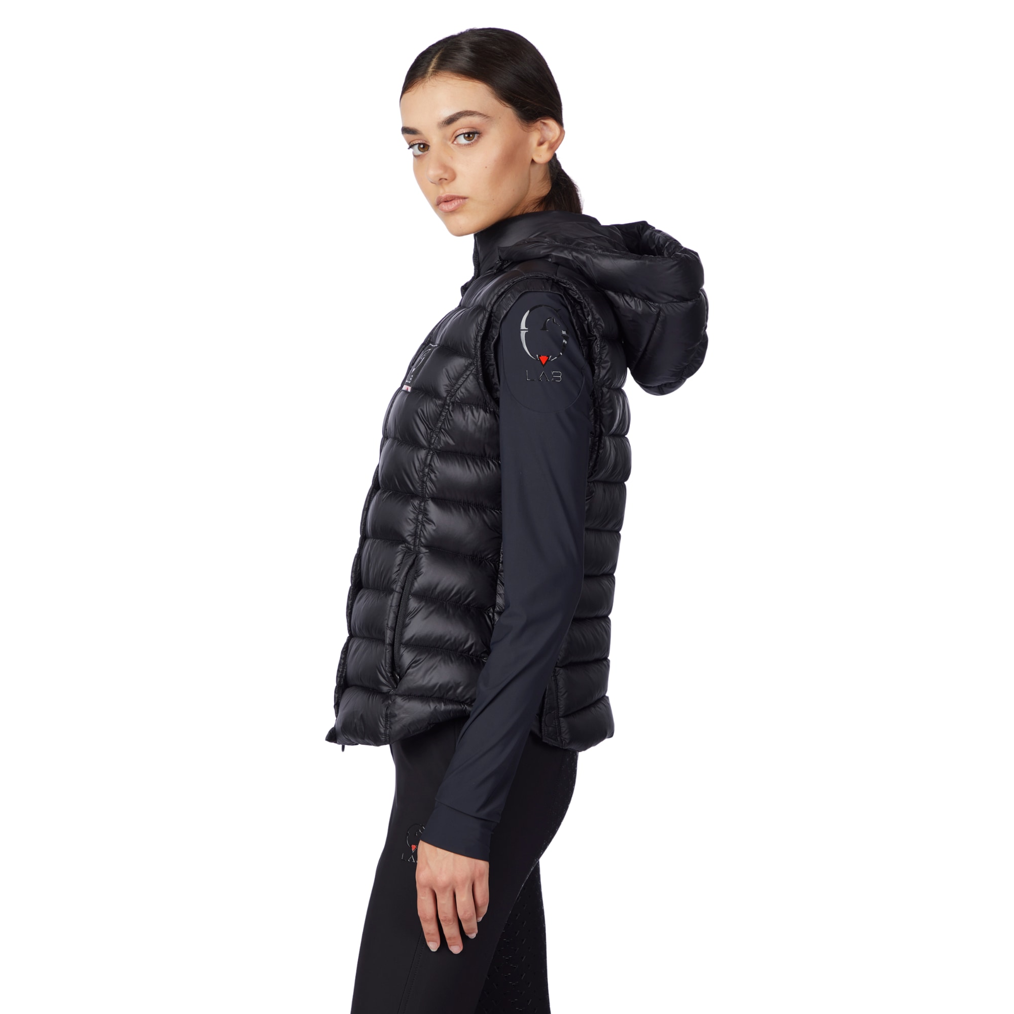 Black hooded vest from Vestrum – a sleek and functional wardrobe essential, perfect for everyday wear and active life at the stable.