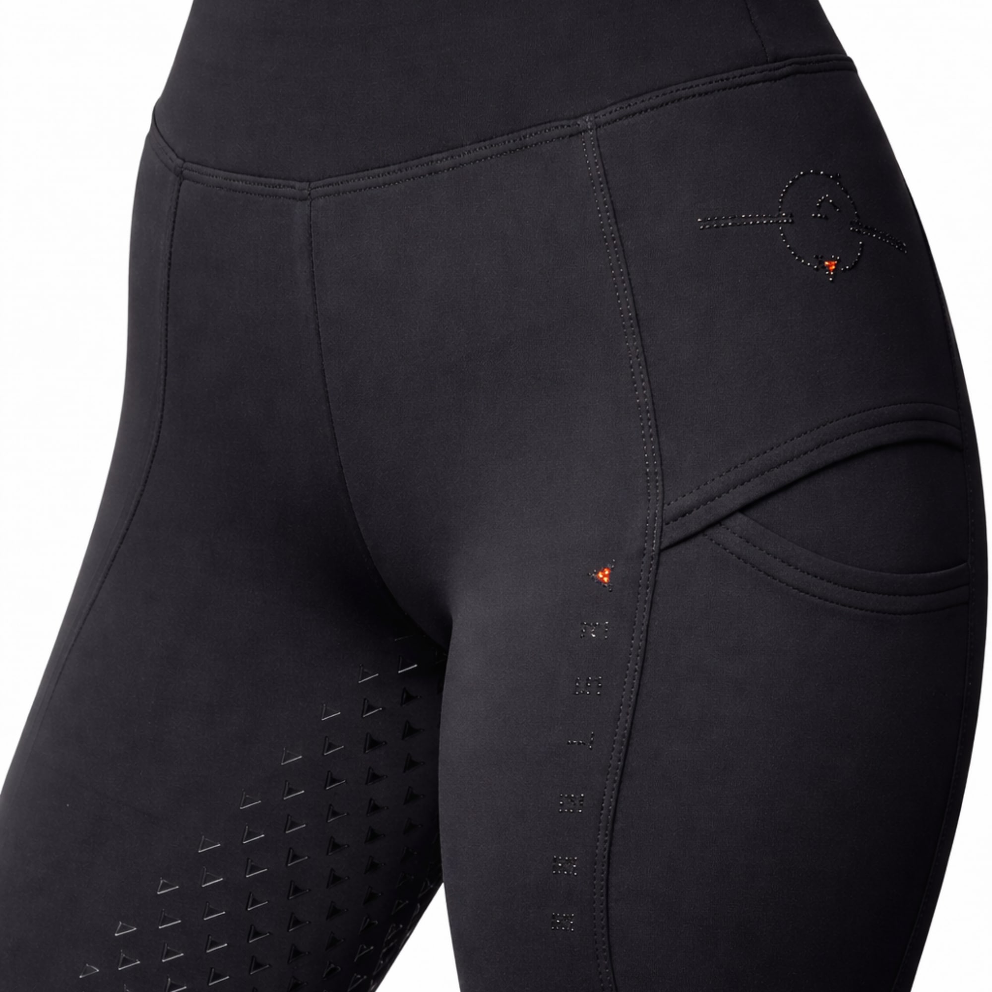 The riding tights are equipped with a phone pocket on both sides of the legs for practical storage.