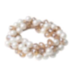 Made with clear thread, it features beautiful white pearls and gold rhinestones.