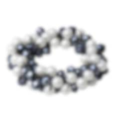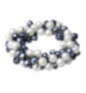 Made with clear thread, it features elegant white pearls and navy faceted rhinestones.