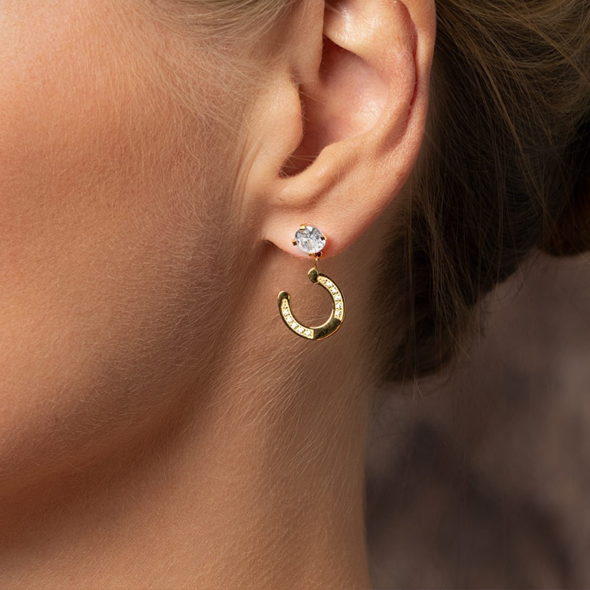 A pair of stylish and lightweight earrings that combine timeless elegance with subtle equestrian details. Gold