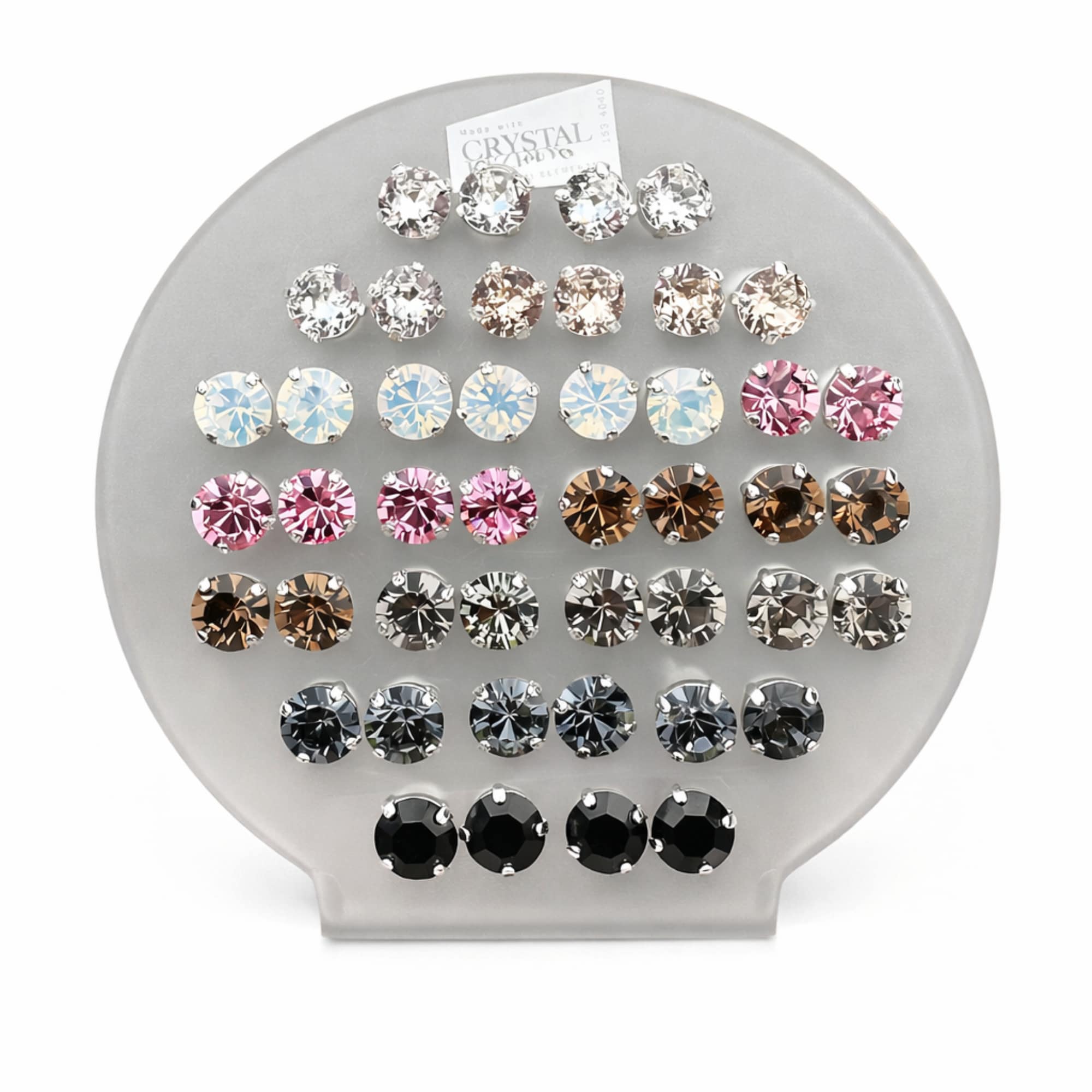 Elegant earrings from Sattlerei Otto Schumacher featuring beautiful Swarovski crystals in the Tiffany design in the colour Greige. The earrings are stylish and timeless and consist of a sparkling crystal set directly on the ear in a classic stud design.