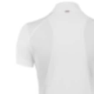 This riding top has an elegant stand-up collar adorned with Cavallo lettering in crystals, and a short front zipper decorated with a jewelry stone and a crystal-embellished zip pull. The competition shirt also features a shimmering Cavallo print in a silver-look finish below the left shoulder, as well as mesh panels on the shoulders and along the side sections on both the front and back.