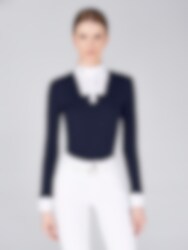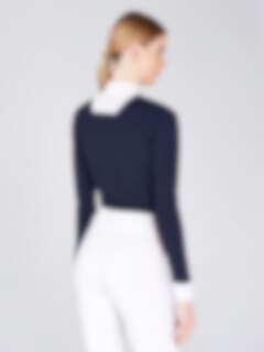Stylish and classic competition shirt from Vestrum. The Lesa LS riding shirt is in a lovely navy blue color with white details at the cuffs and at the neck. The Lesa LS is a really nice competition top that makes you feel well-dressed on the competition days.