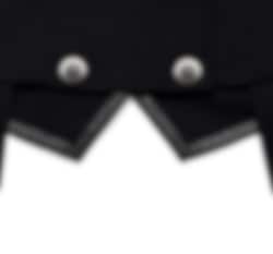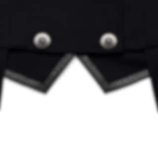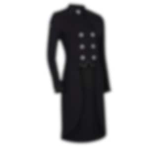 The dressage tail coat from Samshield is black with Swarovski rhinestones on the collar, sideburns and back of the loin. The buttons have a silver edge with black in the middle, a beautiful detail. The material is stretchy, water repellent and dirt-repellent, with a mesh lining for maximum comfort.