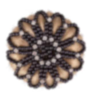 Stylish and classic hairnet made entirely of pearls with decorative crystals woven into a fine pattern. Black