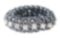 Elegant hair scrunchy with hidden swirled rubber bands that make it look like a beautiful bracelet. This hair scrunchy with pearls also have a number of silver stones around. Very fancy and perfect for party or competition.