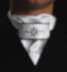 Stylish pre-knotted stock tie in white with silver details. Size Medium