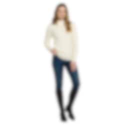 The cable-knit detail on the front gives a flattering expression, while the sleek design makes the sweater easy to match in any wardrobe. A versatile garment that is equally suitable at the stable as in leisure time. Additionally, it is machine washable for easy care.