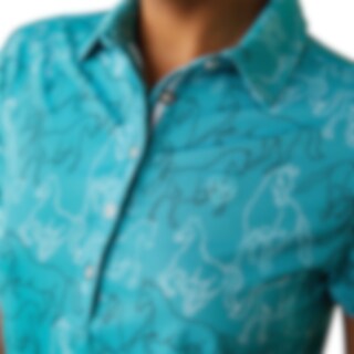 This riding polo is made in a supersoft and wonderful material with short sleeve. The riding pique has several buttons at the collar and an Ariat logo on the chest. The riding shirt is in a lovely blue colour with a cool horse print all over the shirt.