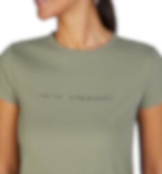 The design includes a chic, rounded neckline and a tailored fit that enhances an elegant silhouette. The top is adorned with a sophisticated Pikeur Athleisure logo in silver on the front.
