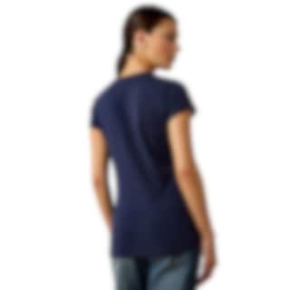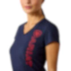 Soft and stylish t-shirt made from an organic cotton blend with stretch and a vertical Ariat logo.