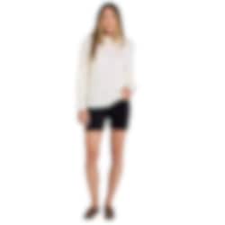 The sweater is knitted in an exclusive yarn blend of bamboo, Tencel™, nylon and cashmere. This combination offers an incredibly soft feel against the skin, while allowing the fabric to drape beautifully and remain naturally breathable. Bamboo is a sustainable and comfortable fibre with excellent breathability, while Tencel™ enhances comfort and provides a flattering drape. Nylon increases durability and helps resist pilling, and the addition of cashmere gives the knit a luxuriously soft finish.