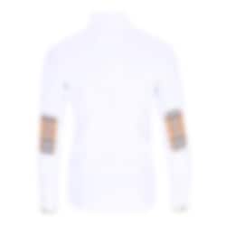 The inside of the collar, cuffs and placket is finished with a checked contrast fabric in brown and beige tones, creating a discreet expression that only becomes visible when worn. Elbow patches in the same fabric act as clear reinforcements, adding durability while enhancing the shirt’s character.