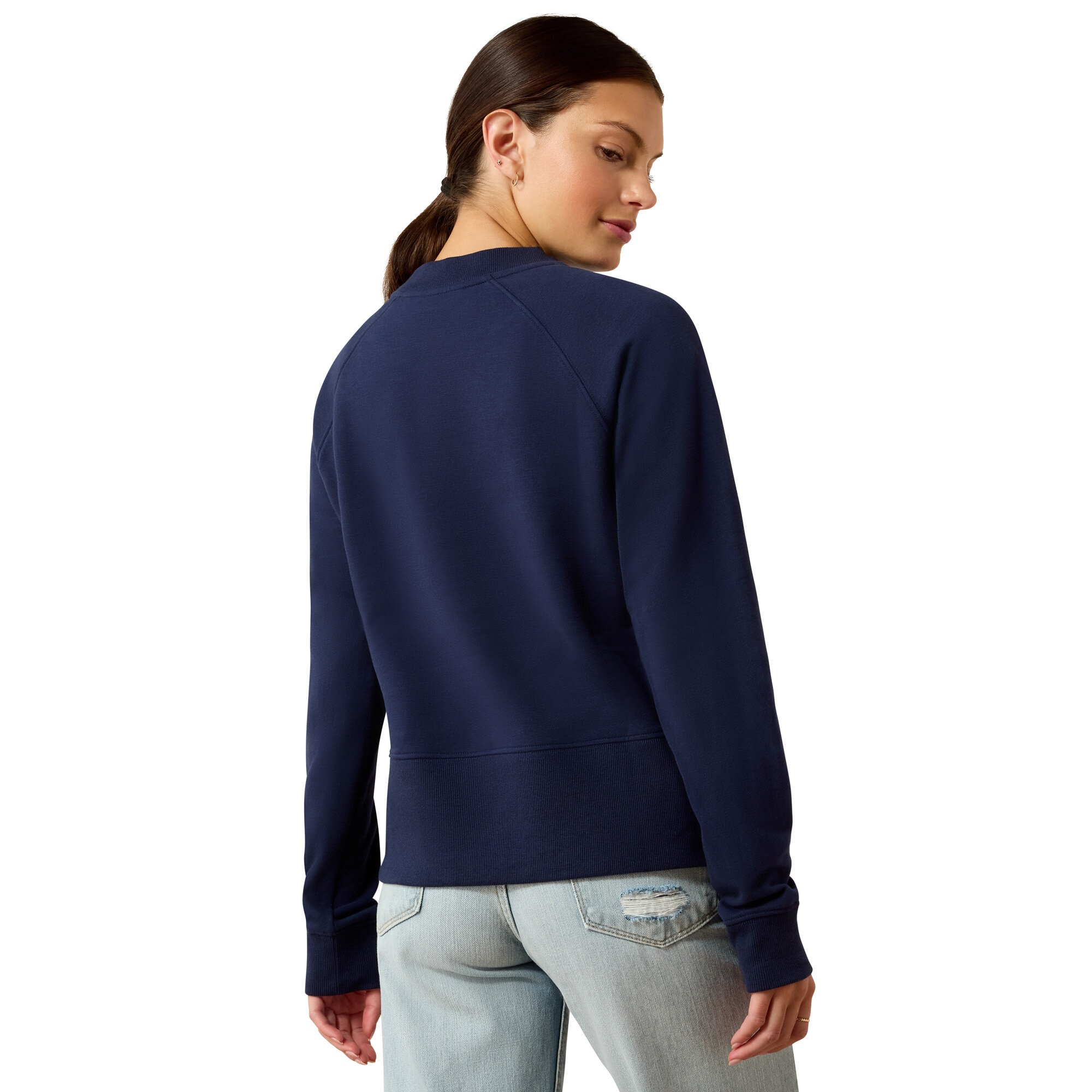 The Ariat Martine Sweatshirt is made from a comfortable fleece blend of brushed organic cotton and recycled polyester, offering a soft feel against the skin and making it ideal for both the yard and everyday wear.