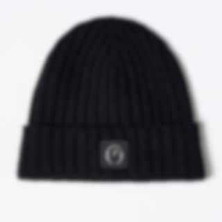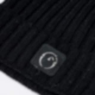 Rib-knit beanie in soft yarn with a folded cuff and leather Vestrum logo on the front. Sleek black design suitable for both everyday wear and the stable.