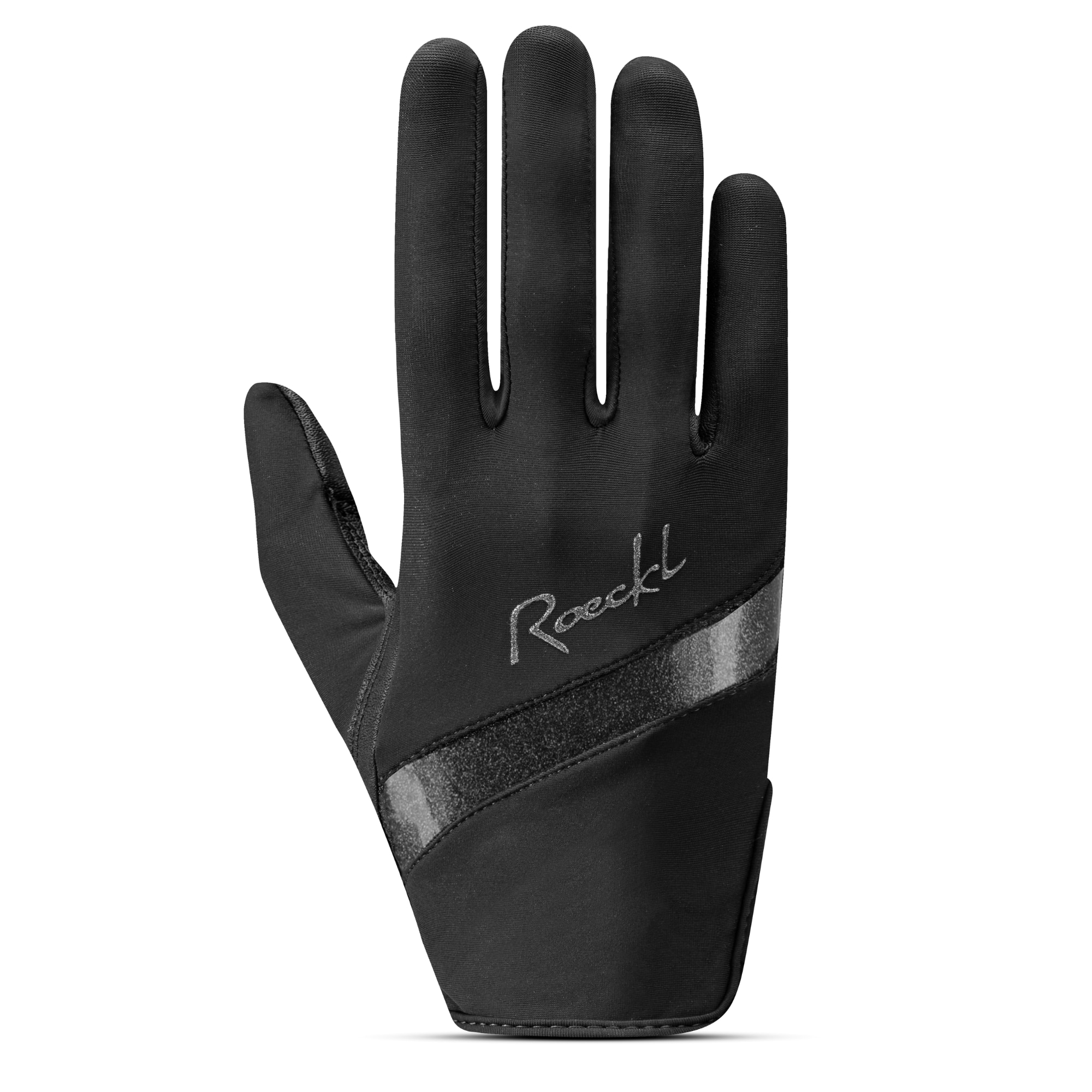 Roeckl Lorraine – thin black riding gloves with glitter details.