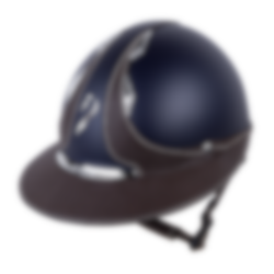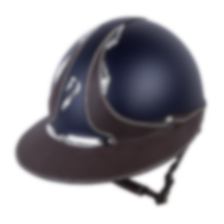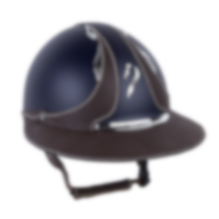 Galaxy Eclipse Riding Helmet from Antarés - A stylish matte navy riding helmet with Eclipse sun visor and brown leather details.