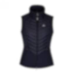This hybrid body warmer offers superior form and function. It's designed with flattering feminine aesthetic, utilizing sewing lines and tonal stitching. With a combination of softshell and padded panels that allow for warmth and flexibility, this body warmer is ideal for active outdoor use.