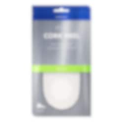 Made from cork and soft foam latex for comfort and stability. Easy to use and secured with a self-adhesive strip between the insole and heel.