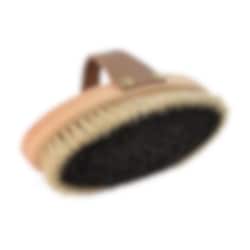 Grooming brush with a beechwood back and bristles made of 100% natural horsehair. Equipped with an easy-to-grip leather strap that provides comfort and control during grooming.