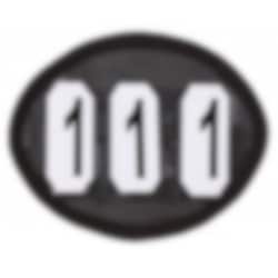 The number badge has 3 digits so you can use numbers from 000-999. The number badge is easily attached to the saddle pad with the associated safety pin.