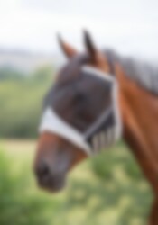 This fly mask is made of fine mesh and is soft against the horse.
