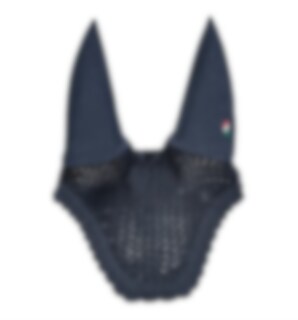 Equiline's Fly Veil Kim in a neat design making it easy to match to several different saddle pads, the fly veil protects the horse's ears from insects during summer and is a neat detail for training and competition. Equiline Logo on the left ear.