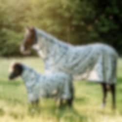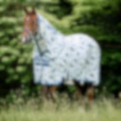Protect your horse from flies with this rug made from tightly woven mesh material. The fly sheet protects against annoying flies as well as harmful UV rays, providing 65% UV protection from head to tail. The Amigo Bug Rug Plus features a long tail flap for extra coverage and protection.
