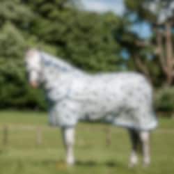 Amigo Integrated Fly Sheet in silver is the perfect solution to protect your horse from summer skin irritations caused by insects. Made from knitted polyester on the outside, it serves as an effective barrier against flying insects. The fully integrated neck cover reduces wither pressure and prevents mane rubs, ensuring optimal comfort for your horse.