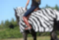 This zebra patterned riding rug is very popular as it helps reduce the number of irritating flies on the horse. Buzz-Off Riding Zebra is a lightweight two part riding rug with a removable neck cover that allows for different levels of protection. This fly rug not only protects the horse against flies but also provides UV protection.