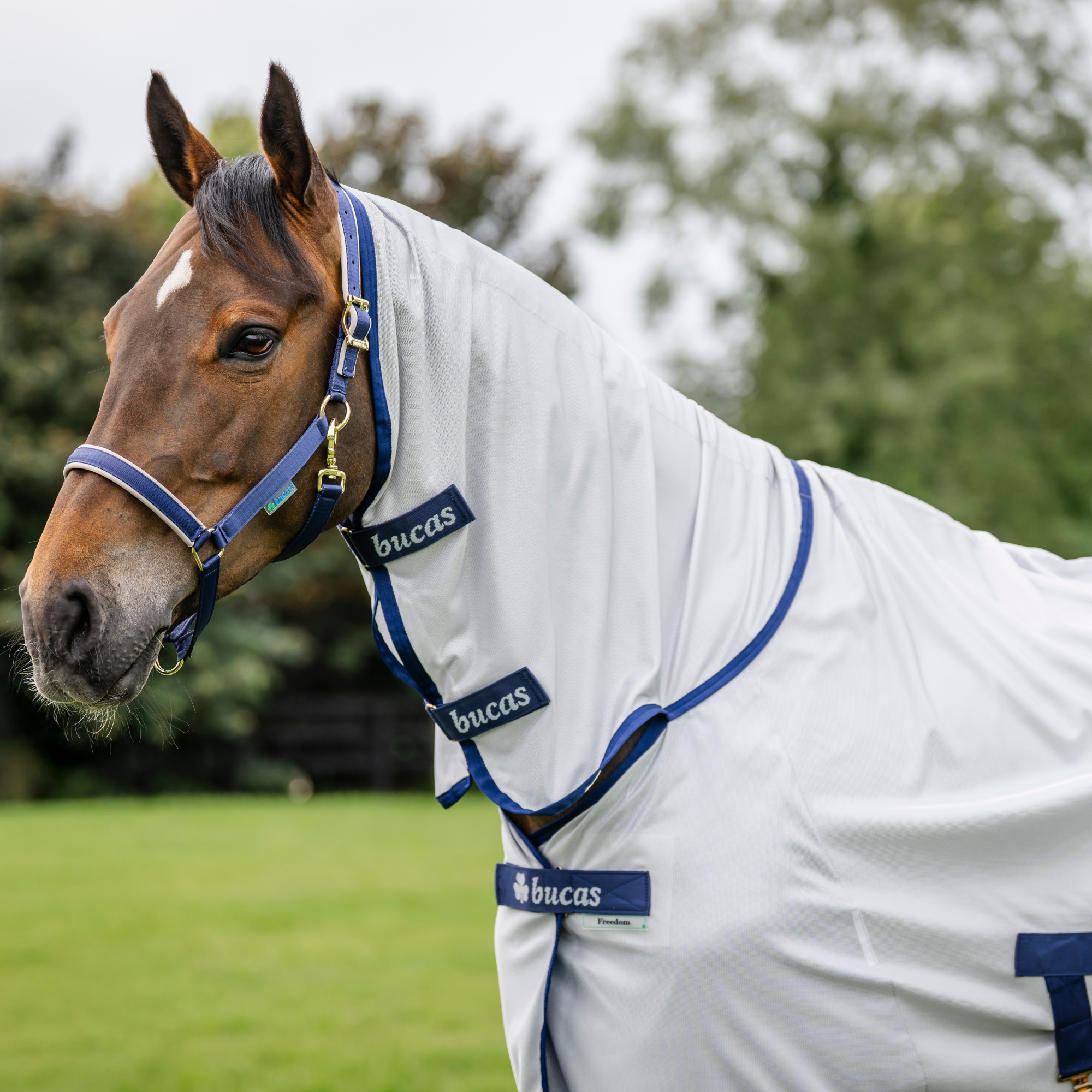 Bucas Freedom Fly Sheet Full Neck is an affordable fly rug with an integrated neck, designed to protect your horse from insects and harmful UV rays.