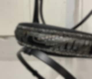 The noseband on this saddle is 5 cm wide in the Comfort XS model, which means that the noseband is tapered towards the sides where the horse has the least space at the bit, the closure of the noseband is buttoned back.