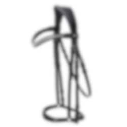 An anatomically shaped headpiece is softly padded and helps distribute pressure evenly over the poll, contributing to greater comfort during riding.