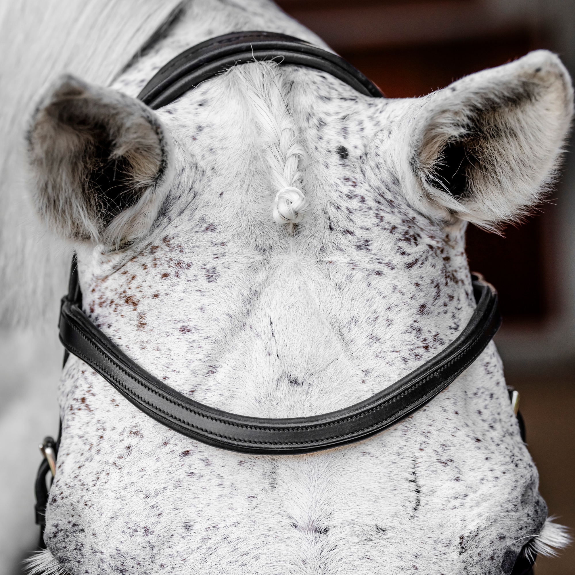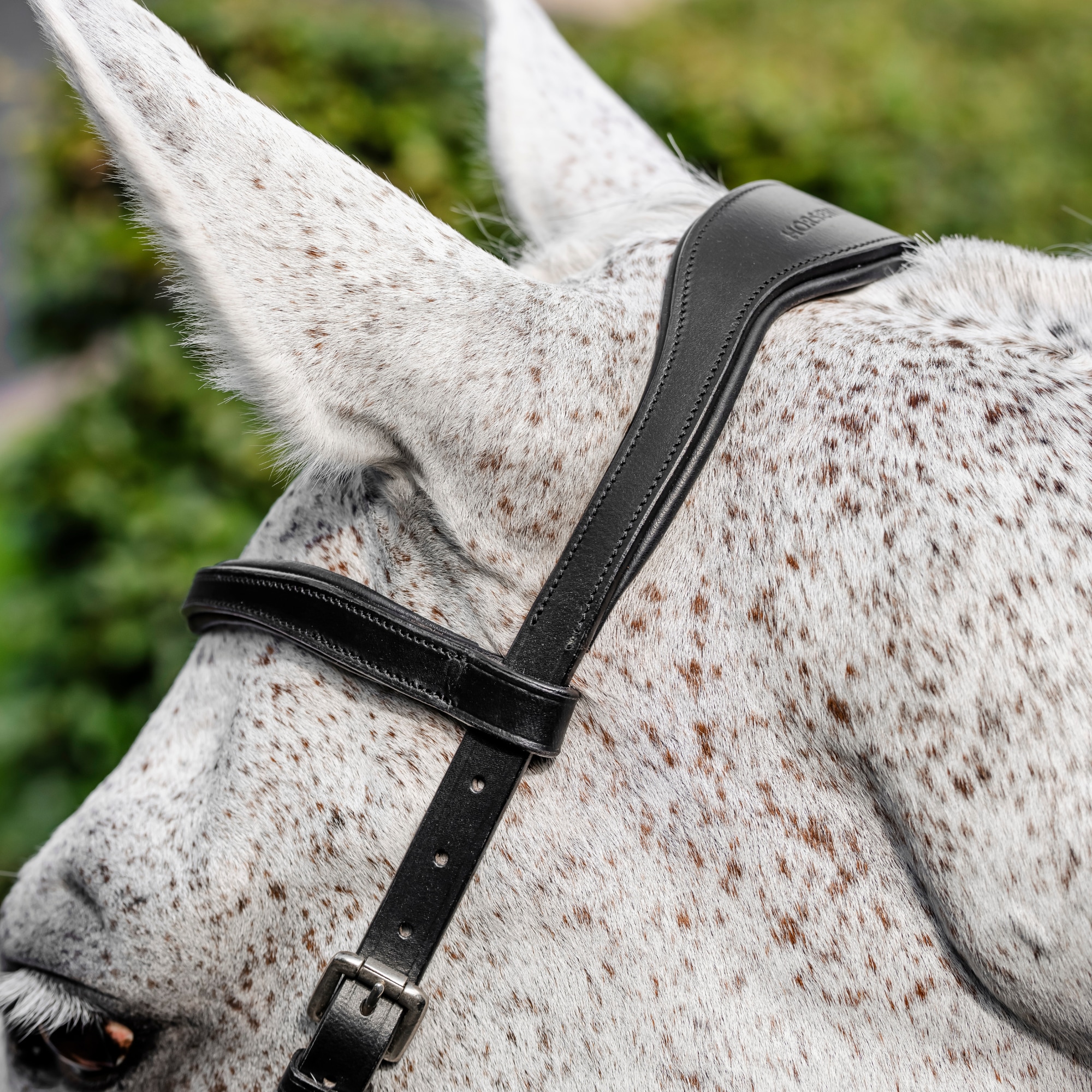A shaped headpiece relieves pressure over the poll and allows space for the ears, while the noseband sits higher to protect sensitive areas and reduce pressure on nerves and breathing. Soft padding provides a comfortable feel, and the cheekpieces can be adjusted for the right fit.