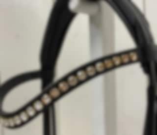 This beautiful bridle has a classic bow-shaped browband with Swarovski stones in shading topaz.